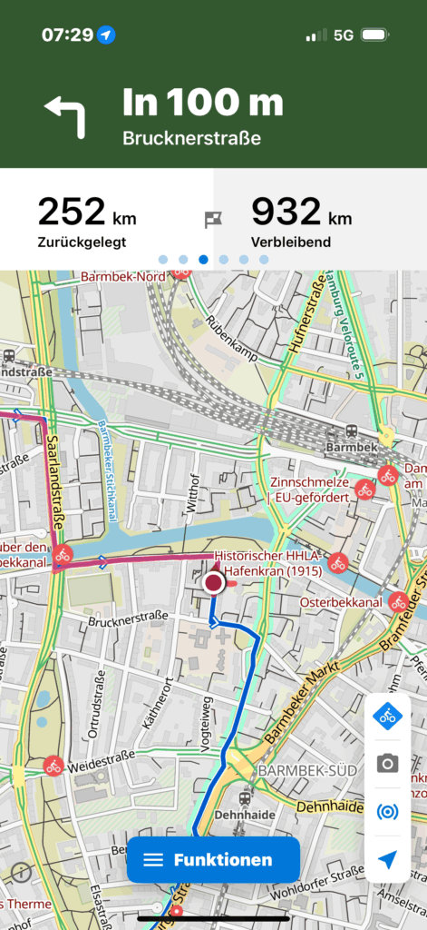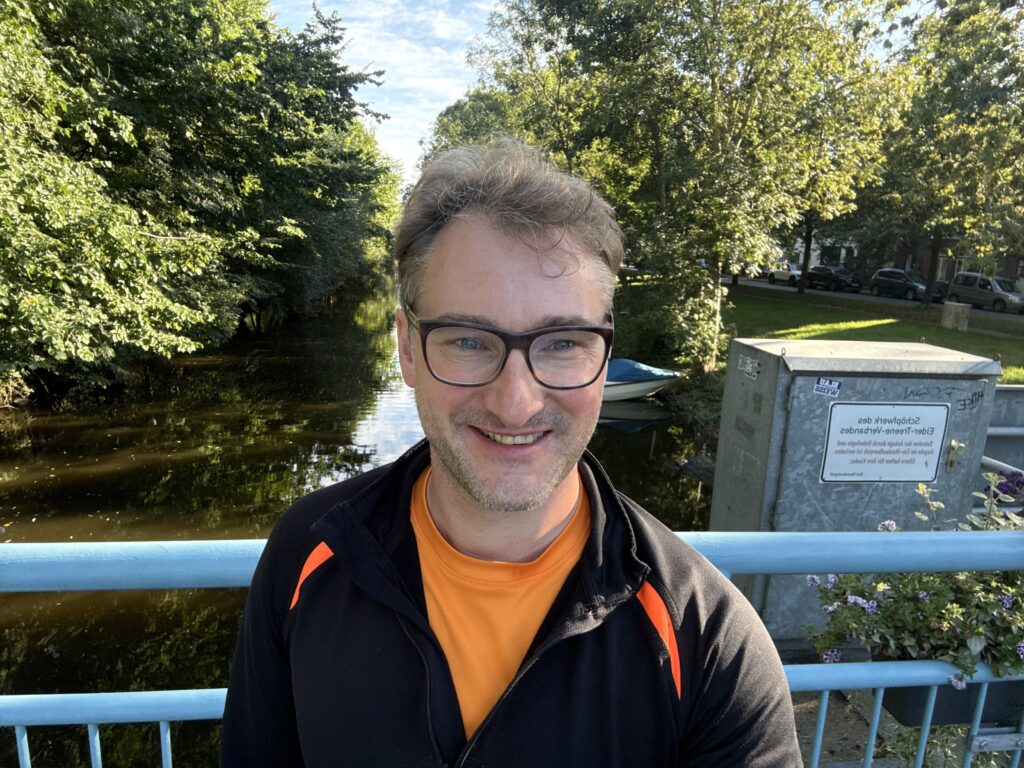 Geplant war für heute eigentlich eine solide Etappe bis Itzehoe – das hatte ich mir als Mindestziel gesetzt. Doch dann kam morgens die Überraschung: Eine Nachricht von meiner PhD-Kommilitonin Sonja, die ein Treffen zur Vorbereitung unseres Alumni-Treffens vorschlug. Wir hätten das als Videokonferenz machen können, doch da ich ohnehin durch Hamburg musste, bot es sich an, das Ganze persönlich zu verbinden. Damit stand mein neues Tagesziel fest – ehrgeizig, aber mit der Belohnung: ein Dach über dem Kopf bei Sonja in Hamburg.
