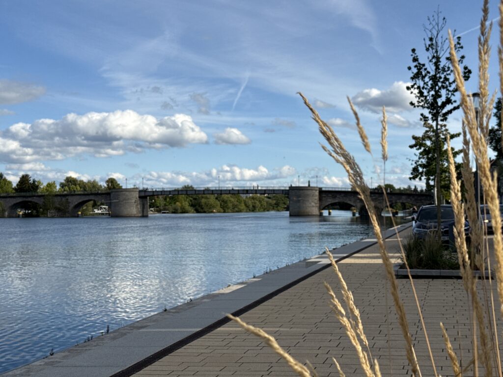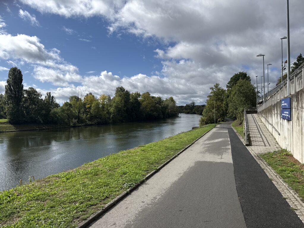 Irgendwann hörte der Regen auf, und es folgte eine lange, erlösende Abfahrt hinunter Richtung Schweinfurt. Dort gönnte ich mir einen Cappuccino, um mich wieder aufzuwärmen. Die Stadt wirkte fast ein wenig verlassen, und auch die Sonne wollte sich noch nicht so recht durchsetzen.