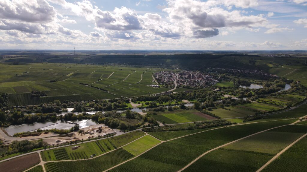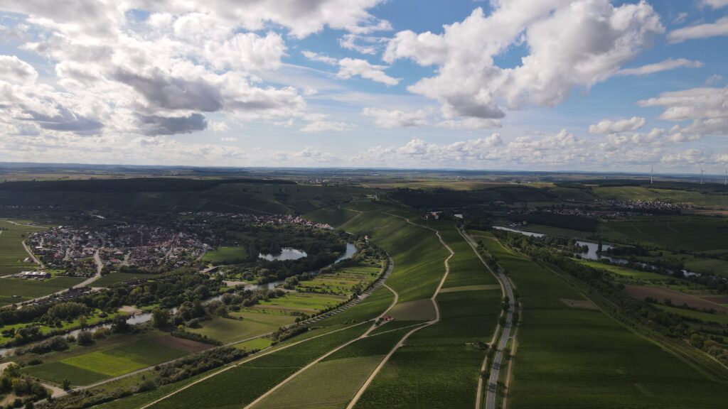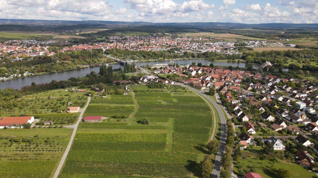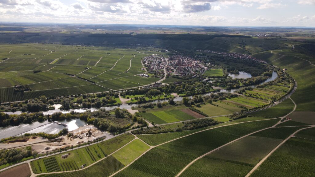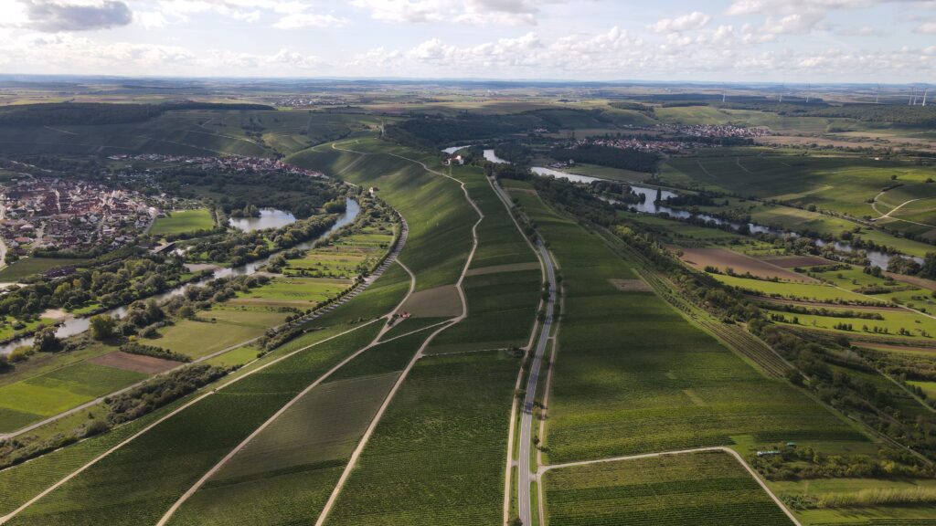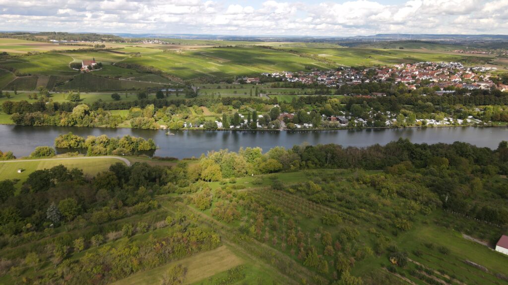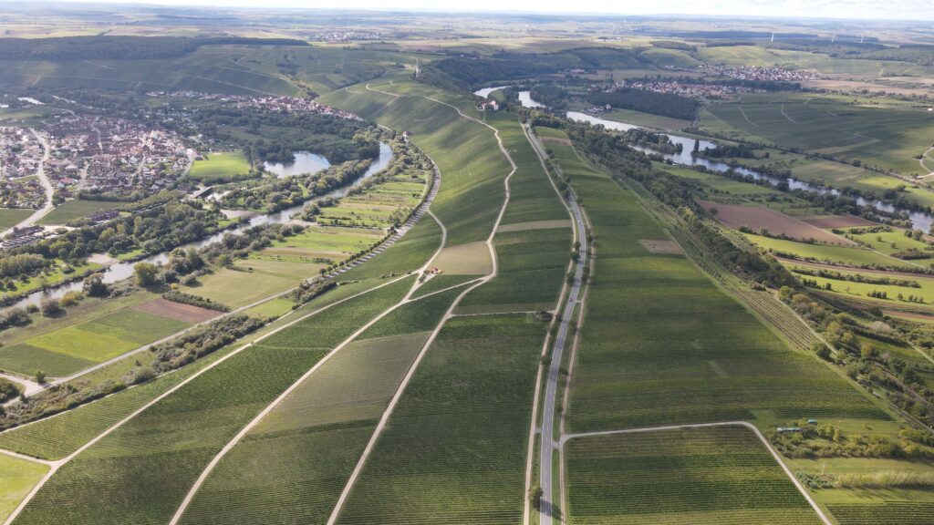 Am Main entlang ging es dann zunächst eher unspektakulär, doch mit den ersten Weinbergen änderte sich die Stimmung schlagartig. Die Strecke wurde wunderschön – allerdings hatte Komoot für mich die kürzeste Routeberechnet. Das bedeutete: nicht brav den Windungen des Mains folgen, sondern immer wieder hoch auf den Weinberg und wieder hinunter. Fantastische Ausblicke belohnten mich dafür, aber meine Knochen wurden spürbar müder.