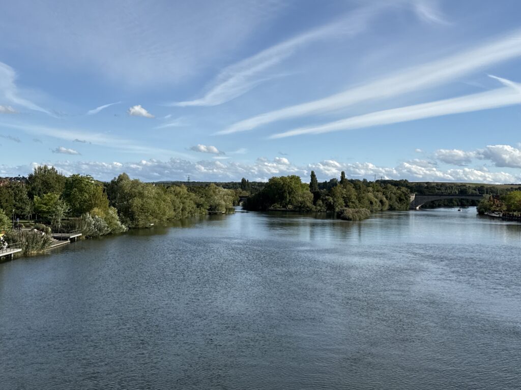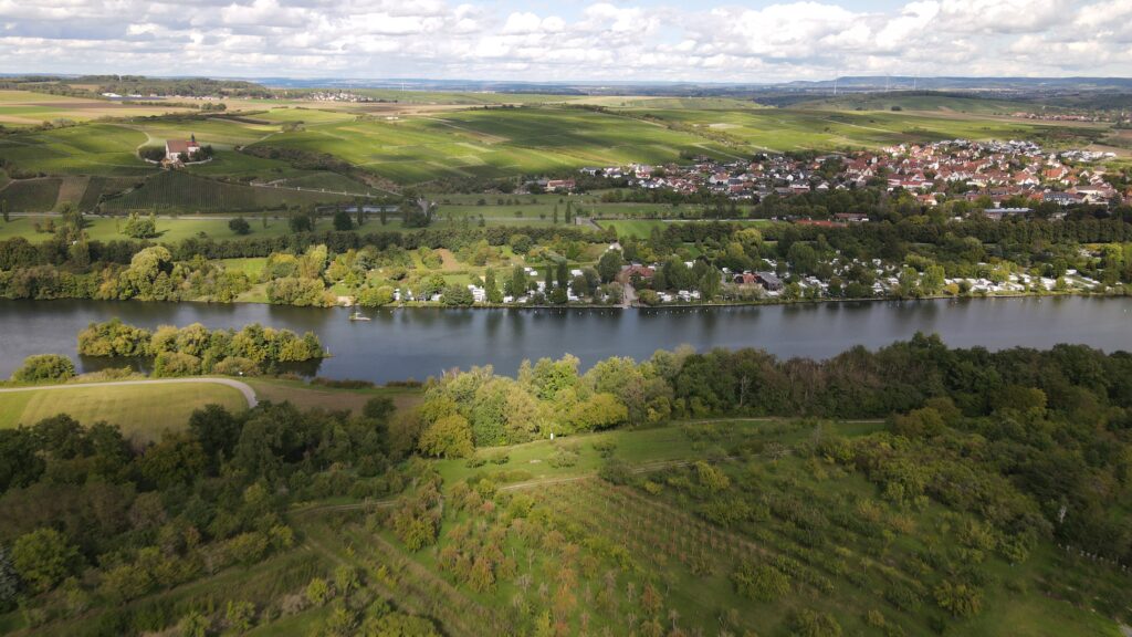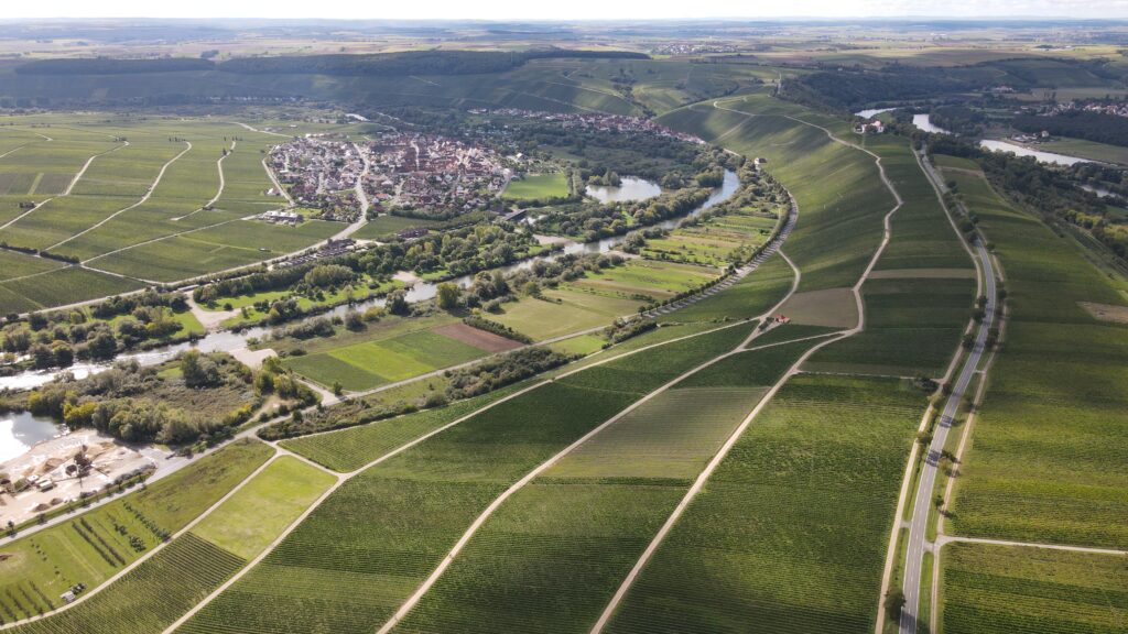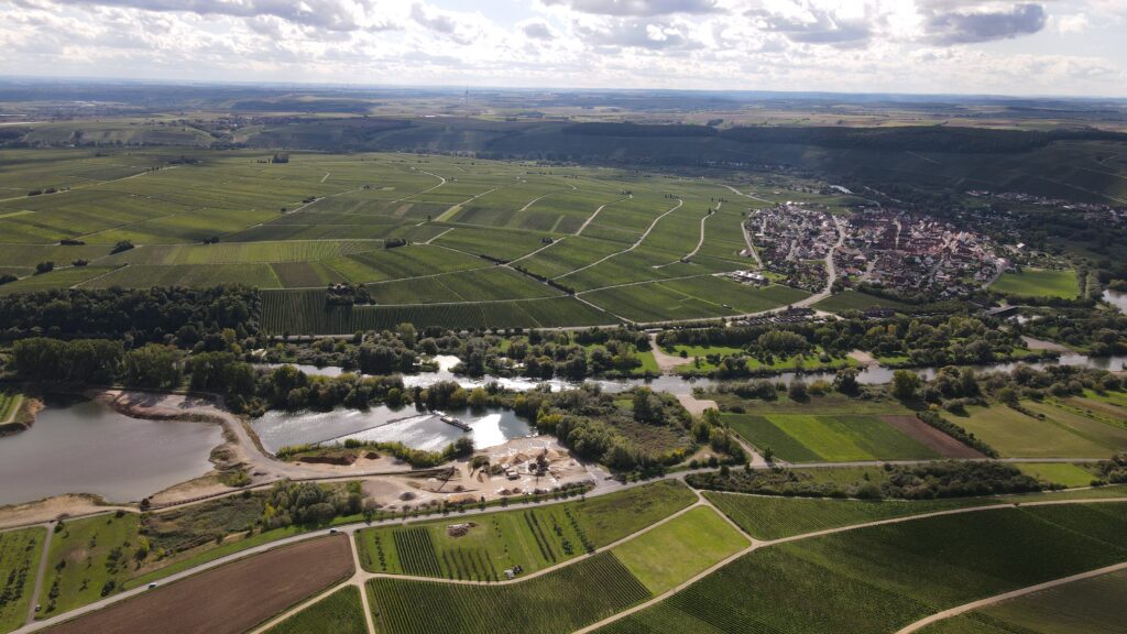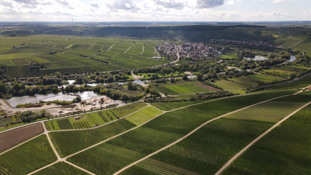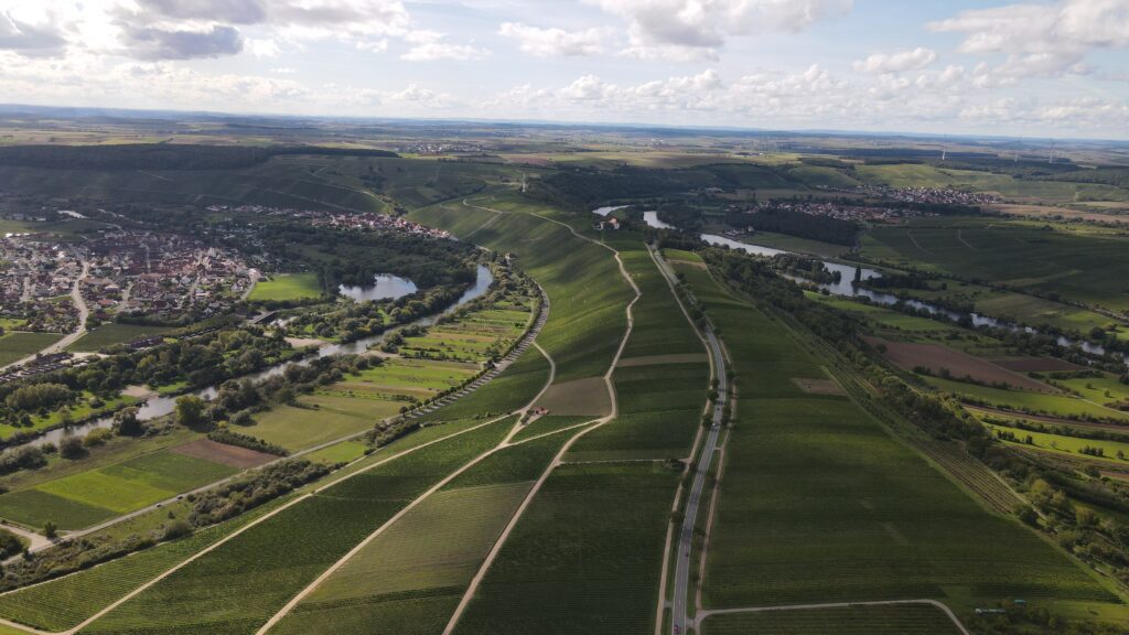 Am Main entlang ging es dann zunächst eher unspektakulär, doch mit den ersten Weinbergen änderte sich die Stimmung schlagartig. Die Strecke wurde wunderschön – allerdings hatte Komoot für mich die kürzeste Routeberechnet. Das bedeutete: nicht brav den Windungen des Mains folgen, sondern immer wieder hoch auf den Weinberg und wieder hinunter. Fantastische Ausblicke belohnten mich dafür, aber meine Knochen wurden spürbar müder.